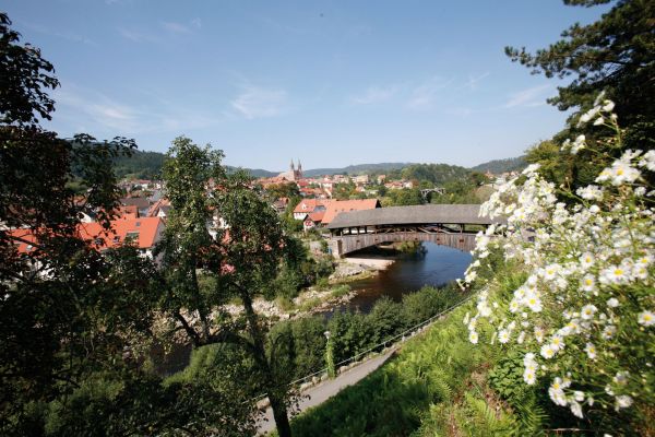 Die knapp 44 Meter lange Forbacher Holzbrücke ist das Wahrzeichen der Gemeinde.