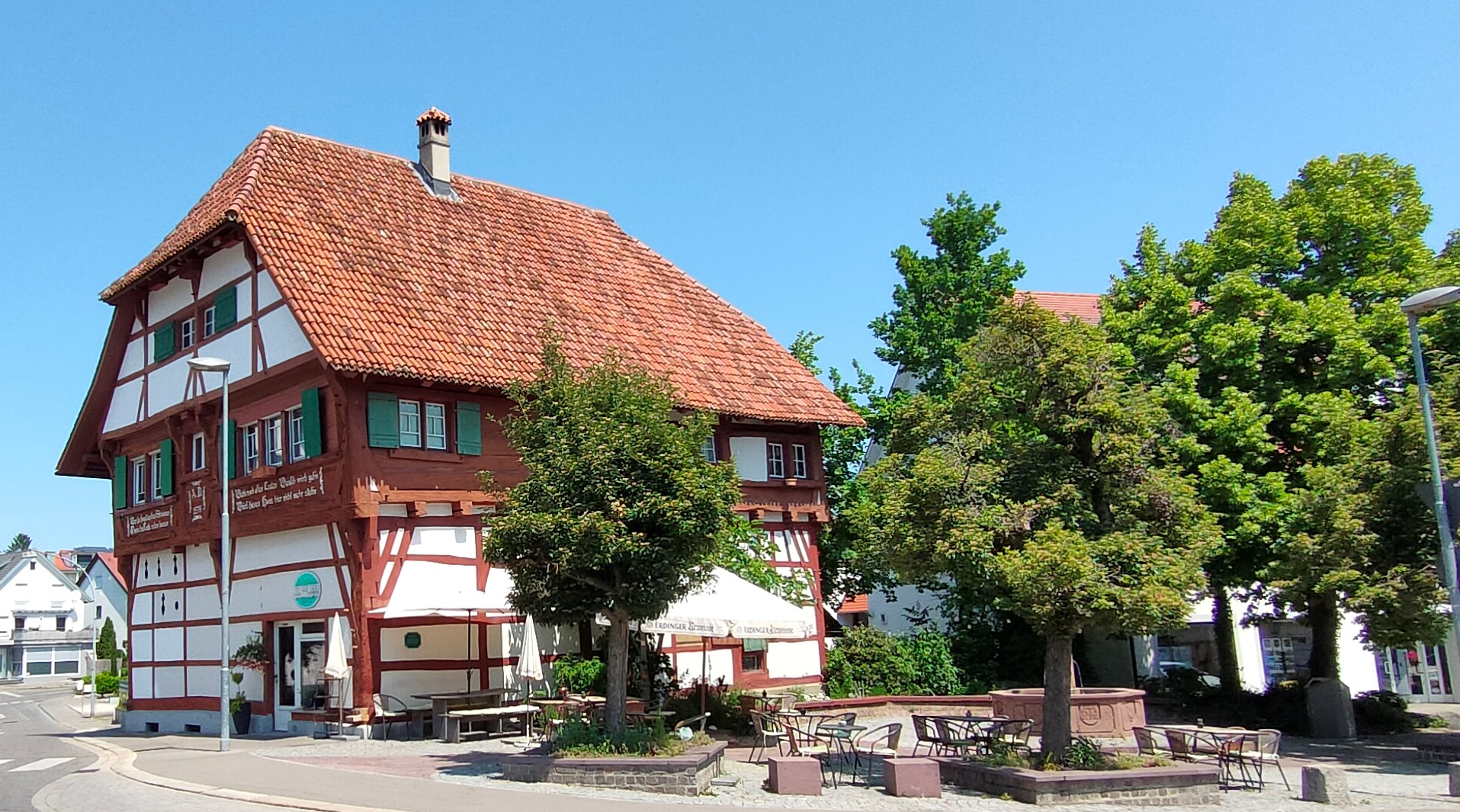 Schwörerhaus mit Brunnen "Der starke Vinzenz", Immenstaad am Bodensee.