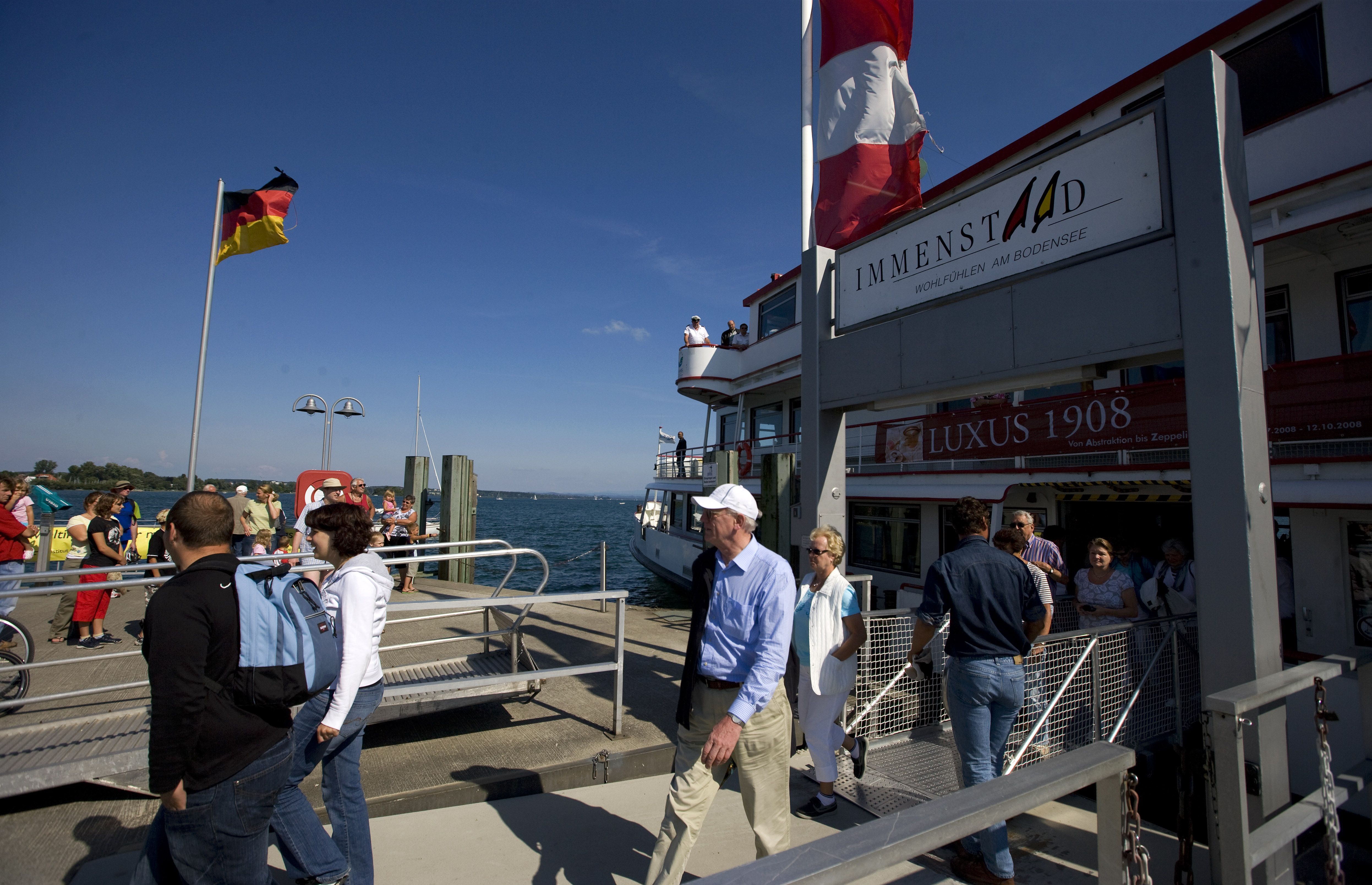 Passagiere beim Verlassen der deutschen Flotte (Bodensee-Schifffahrts-Betriebe).