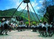 Bildbeschreibung: Aufstellen des Maibaums auf dem Florianiplatz in Bad Reichenhall.08.03.2020 16:09Kräftige Männerbeine, die sich tonnenschweren Baumstämmen entgegenstemmen, farbenfrohe Frömmigkeit, die sich sogar aufs Wasser wagt: Fronleichnams- und Maibaum-Bräuche sind die sehenswerten Frühlingsboten im oberbayerischen Jahreskalender. www.oberbayern.de