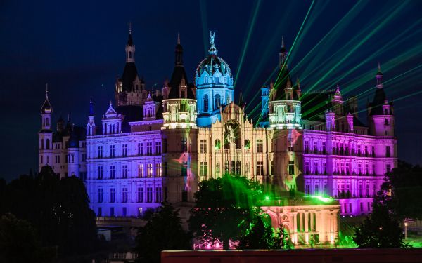 Titelbild: Das illuminierte Schweriner Schloss, Foto: Erhard Gottschling