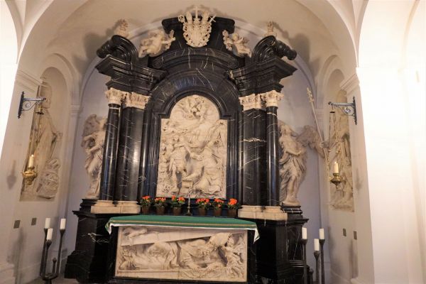 Der Bonifatiusaltar besteht u.a. aus schwarzem Marmor und Alabaster.