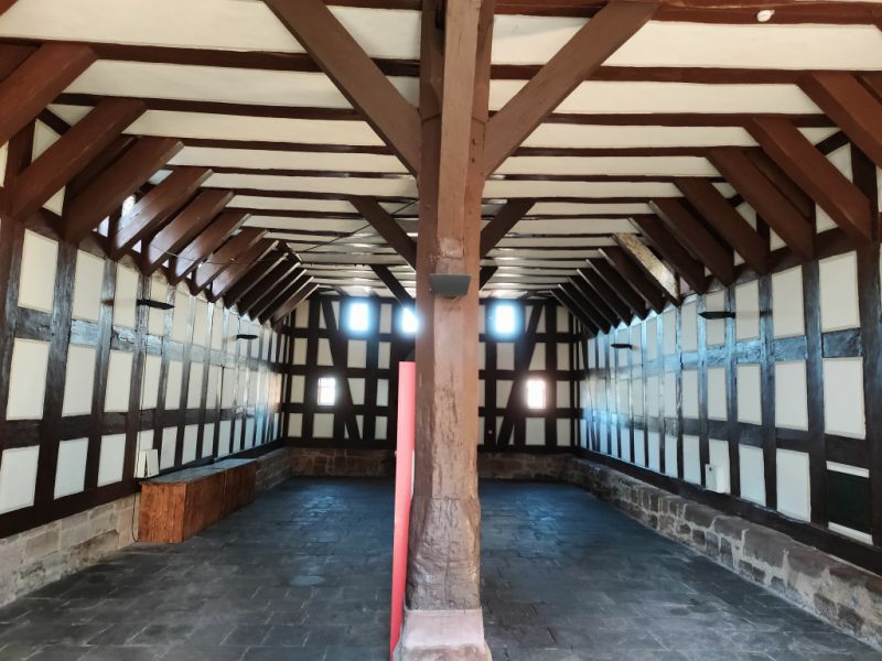 Das Trauzimmer befindet sich an der Nordseite des Obergeschosses und ist mit wertvollen Möbeln und einem Hirschgeweihleuchter von 1562 ausgestattet, der das Wappen der hessischen Landgrafen trägt.