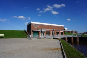 Der Jadebusen ist umgeben von einem hohen Deich und entleert sich zweimal täglich. Der Unterschied zwischen Hochwasser und Niedrigwasser ist hier der höchste Deutschlands.