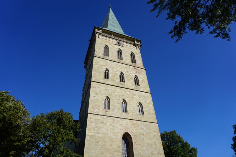 Die spätgotische Hallenkirche in der Osnabrücker Altstadt ist mit ihrem rund 103 m hohen Turm bereits von Weitem sichtbar.