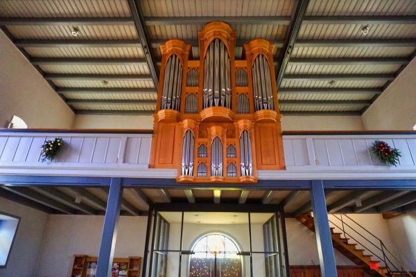 An ihrer Stirnwand ist ein Relief aus Sandstein angebracht, das die Patronin Maria neben dem Wappen des damaligen Abtes Johannes III. zeigt.