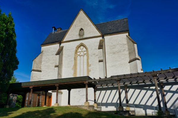 Die dreischiffige Kirche besitzt ein hoch aufragendes Gewölbe, jedoch keinen Turm. Die einst an einem Träger aus Holz befestigten Glocken hängen heute im Paulusturm.