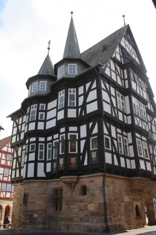 (Kartenansicht)Das schmucke Rathaus von Alsfeld wurde in den Jahren 1512-1516 mit offener Erdgeschoßhalle als Steinbasis und Fachwerk-Aufsatz erbaut.