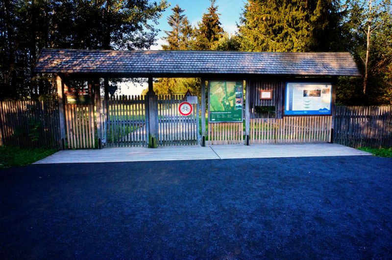 Durch ein großes Holztor gelangt man in das Gelände vom Schwarzen Moor.