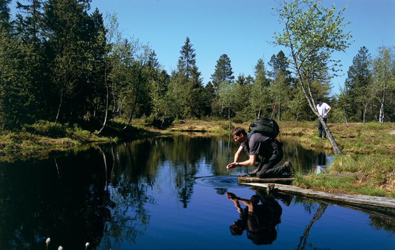 Als Startpunkt eignet sich der Wanderparkplatz in Hinterschweinhöf und von dort aus führt die Strecke durch ein natürliches Gebiet mit Moortümpeln und einer vielfältigen Flora und Fauna. Enzian und Orchideen sind hier genauso zu beobachten, wie die seltenen Spirkenbäume. Da die Pflanzenwelt der Moore ein empfindliches Ökosystem sind, sollten Wanderer und Spaziergänger unbedingt auf den Wegen bleiben!