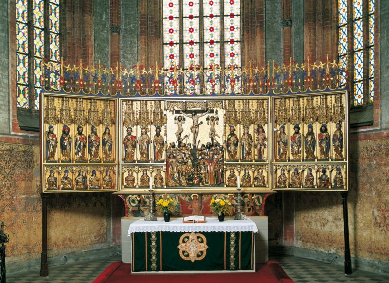 Der Dom zu Güstrow wurde im Jahr 1335 in norddeutscher Backsteingotik fertiggestellt und besitzt einen spätgotischen Flügelaltar, der um 1500 in den Dom integriert wurde. Seine Schnitzarbeit stammt von dem Hamburger Bildschnitzer Hinrik Bornemann.